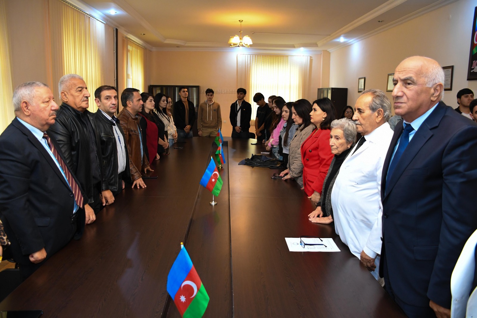Daha sonra Əsaslı kitabxananın direktoru Kamil Məmişov, İctimai fənlər kafedrasının dosentləri Samirə Qasımova, Sevda Abdullayeva, professor Siyasət Məmmədov çıxış edərək qazanılan şanlı Zəfər nəticəsində Azərbaycanın Dövlət Bayrağı suverenliyimizin bərqərar olduğu bütün ərazilərdə əzəmətlə dalğalanmasından, bu strategiyanın yalnız 2020-ci il Qələbəsi ilə deyil, eyni zamanda 2023-cü ilin sentyabrında cəmi 24 saat ərzində keçirilmiş lokal anti-terror tədbirləri ilə Azərbaycan öz suverenliyini tam şəkildə bərpa etməsindən, cəmi bir gün davam edən anti-terror əməliyyatları nəticəsində Konstitusiyamızın aliliyi, dövlətin hüquqi və inzibati hakimiyyəti ölkəmizin bütün ərazisində təmin olunmasından söhbət açıblar.