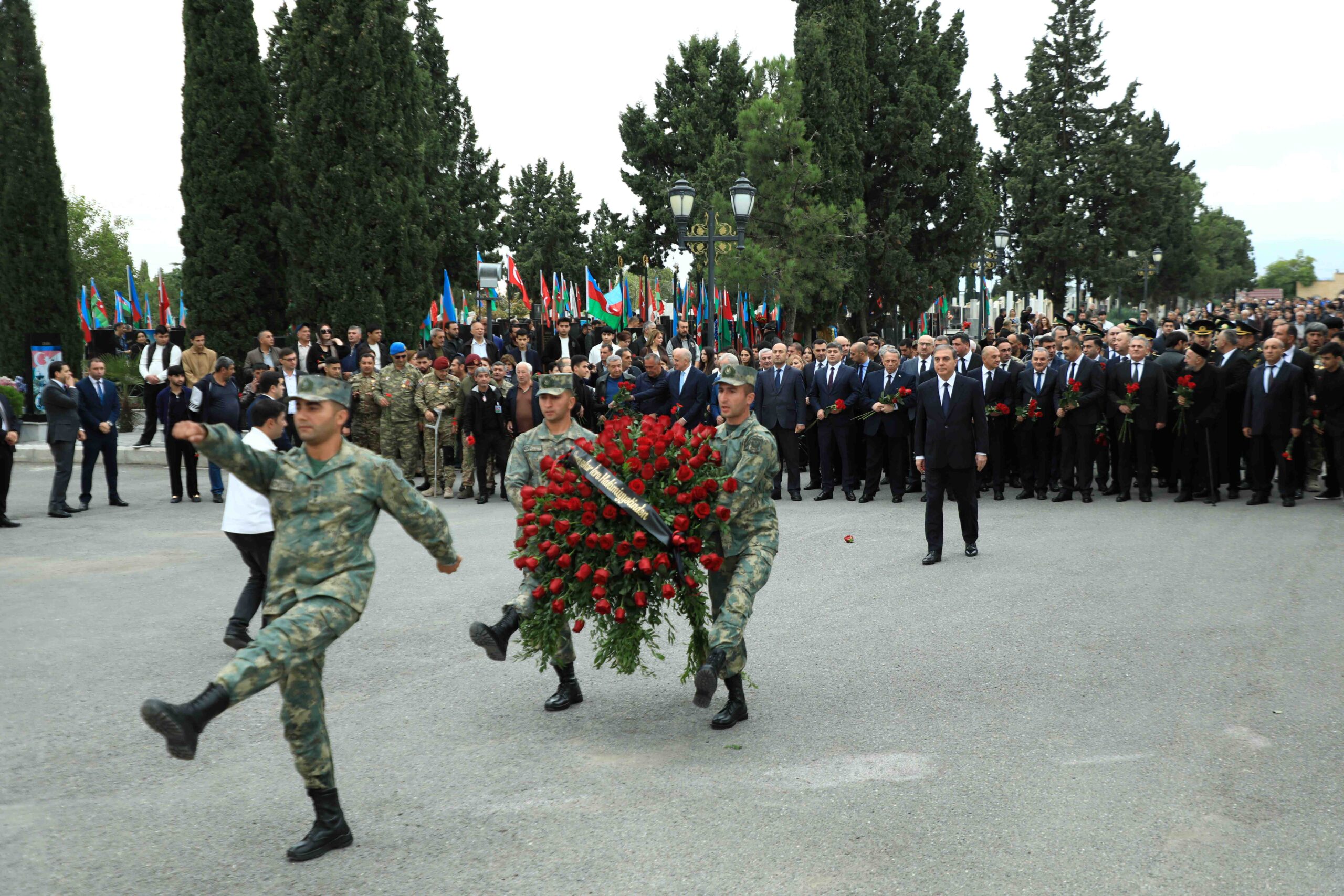 Daha sonra Şəhidlər xiyabanında Azərbaycanın müstəqilliyi, suverenliyi və ərazi bütövlüyü uğrunda canından keçən şəhidlərimizin əziz xatirəsi bir dəqiqəlik sükutla yad edilib. Şəhərin Nizami Gəncəvi və Heydər Əliyev, Heydər Əliyev və Şah İsmayıl Xətai prospektlərinin kəsişməsində nəqliyyatın hərəkəti dayandırılıb, avtomobillər vasitəsilə səs siqnalları verilib.