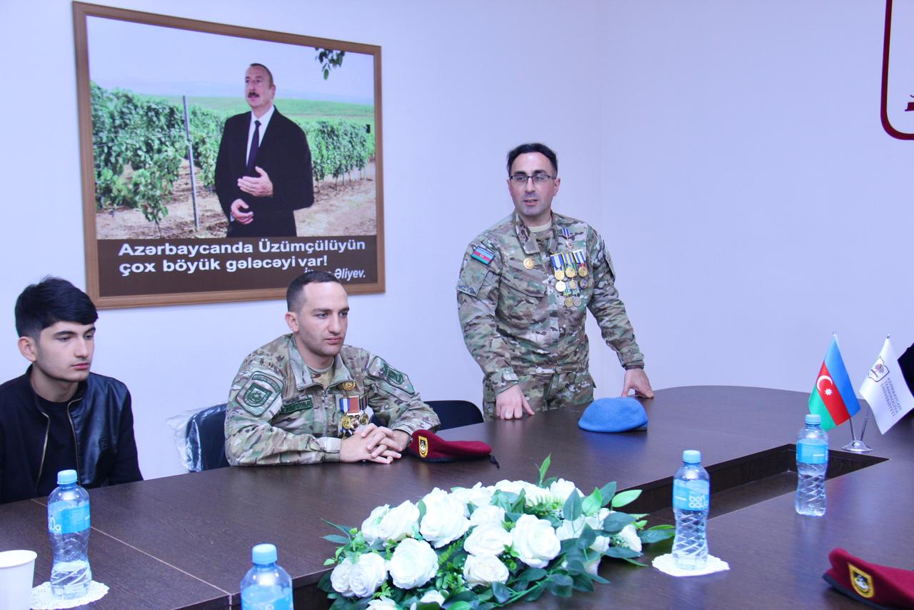 Azərbaycan Texnologiya Universitetində və Azərbaycan Dövlət Aqrar Universitetində keçirilən görüşlərdə Gəncə Şəhər İcra Hakimiyyətinin Vətən müharibəsi iştirakçıları və şəhid ailələri ilə işin təşkili şöbəsinin müdiri, ehtiyatda olan mayor Mahir Hüseynov, həmçinin onun döyüş yoldaşlarının çıxışları dinlənilib.